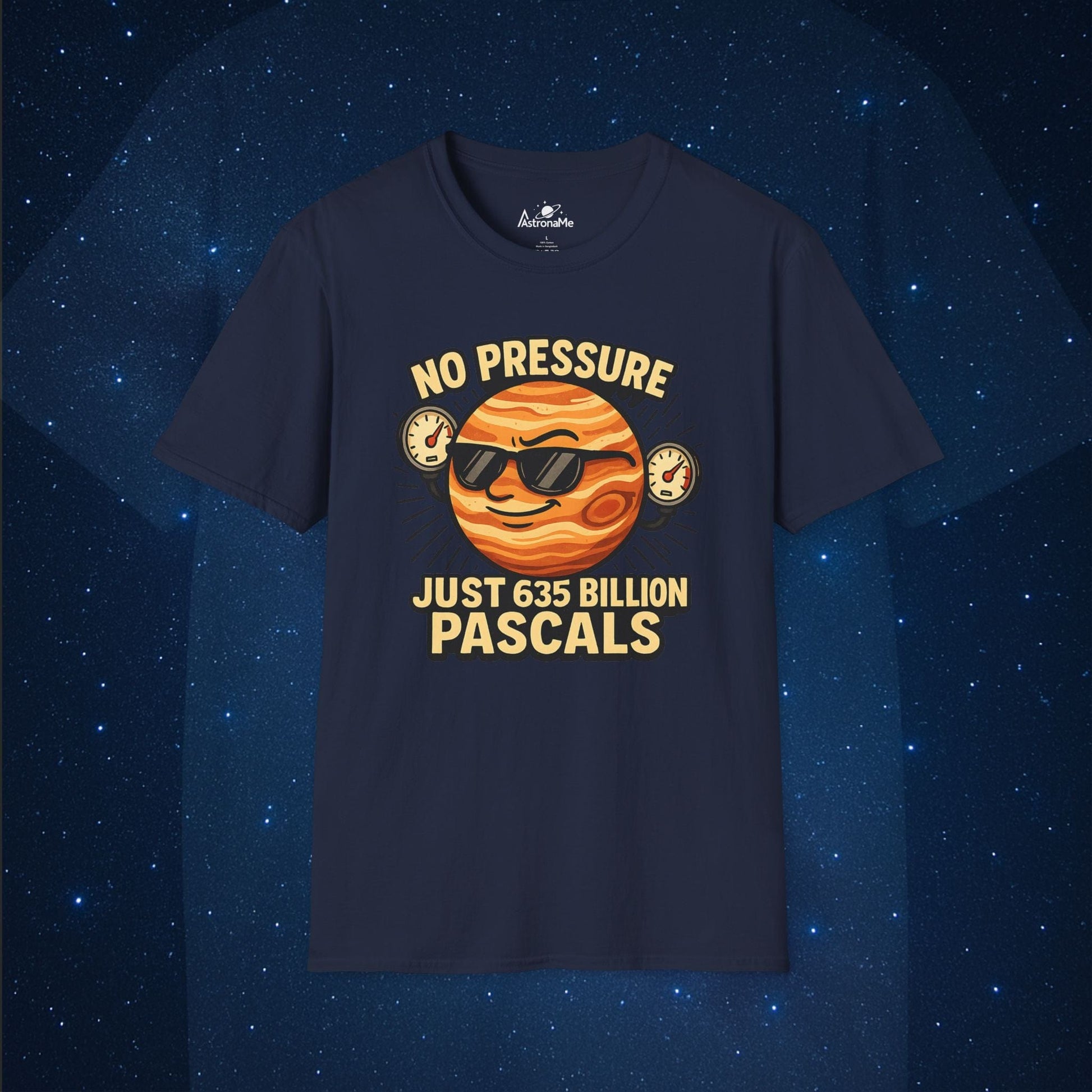 Feeling the pressure? Not like Jupiter. This hilarious “No Pressure – Just 635 Billion Pascals” T-shirt stars a cool, shades-wearing gas giant flexing its atmospheric might. Perfect for science lovers, physics nerds, and anyone who thrives under (or laughs at) extreme conditions.