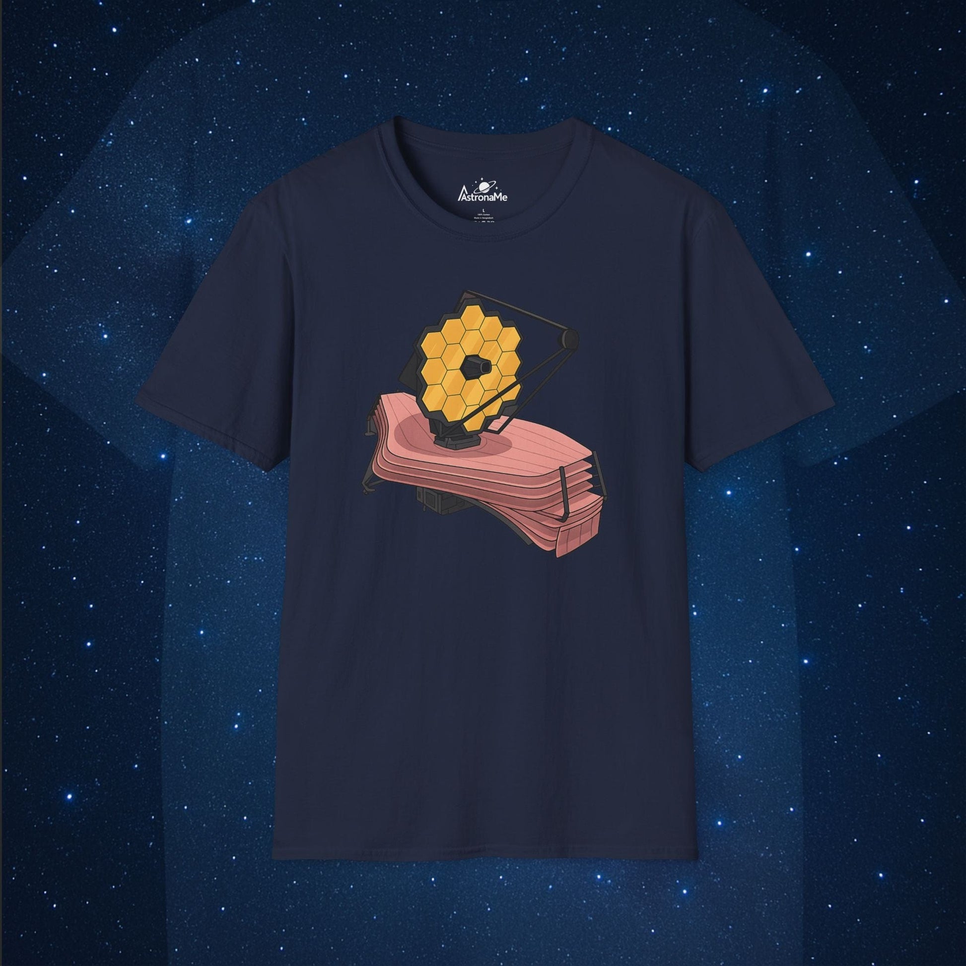 Celebrate the future of space exploration with our James Webb Space Telescope (JWST) tee, featuring a detailed graphic of NASA’s most advanced space observatory. With its iconic golden hexagon mirror and sleek design, this shirt is perfect for astronomy lovers, science enthusiasts, and anyone inspired by the wonders of the universe.