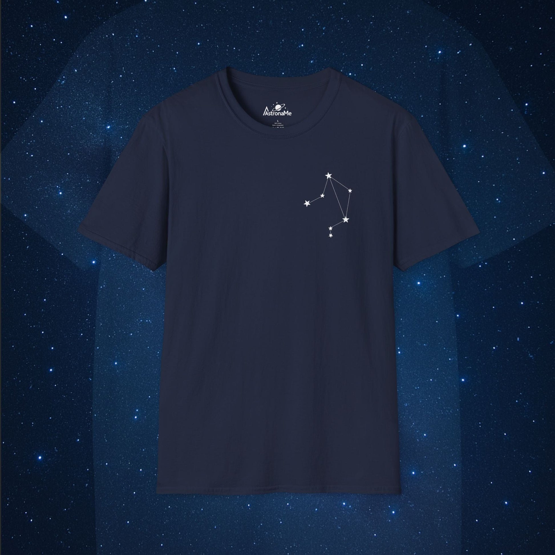 Find your cosmic harmony with this Libra Constellation T-Shirt. Featuring a clean, minimalist white-line depiction of the Libra star pattern over the chest, this elegant tee reflects the balance, charm, and grace that define this air sign.