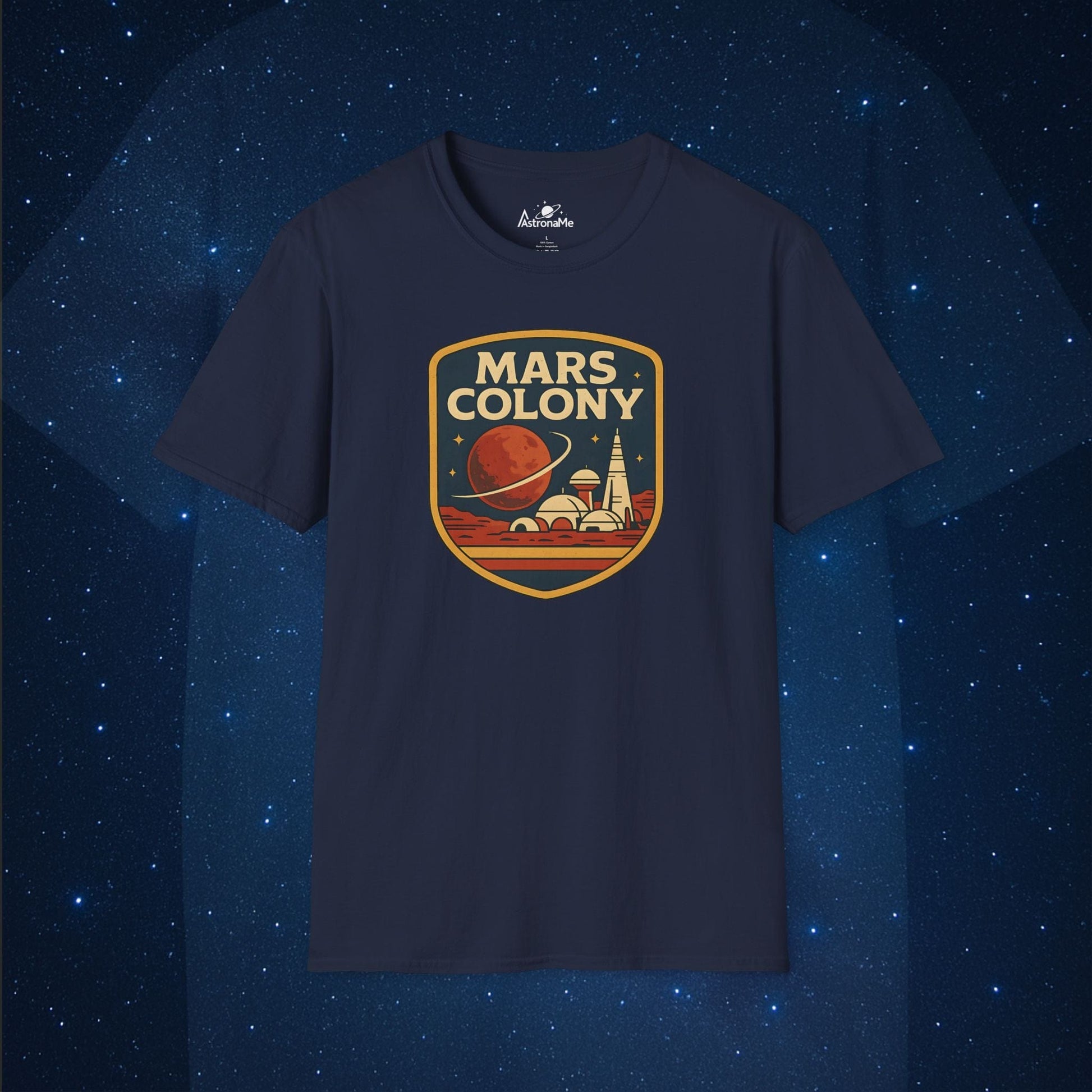 Suit up for the red planet with our “Mars Colony” T-Shirt! Designed like a vintage space mission patch, this retro-futuristic design features Mars, rockets, domes, and the bold spirit of interplanetary adventure.