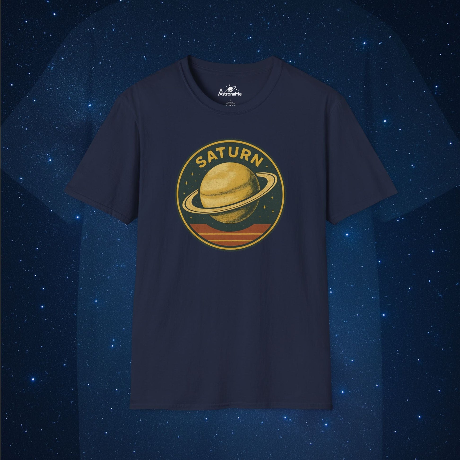 Celebrate the majesty of the ringed giant with this Vintage Saturn T-Shirt, featuring a classic retro badge-style design. With muted golden tones and a bold planetary illustration, this tee is perfect for space lovers, stargazers, and anyone with a passion for astronomy and old-school style.