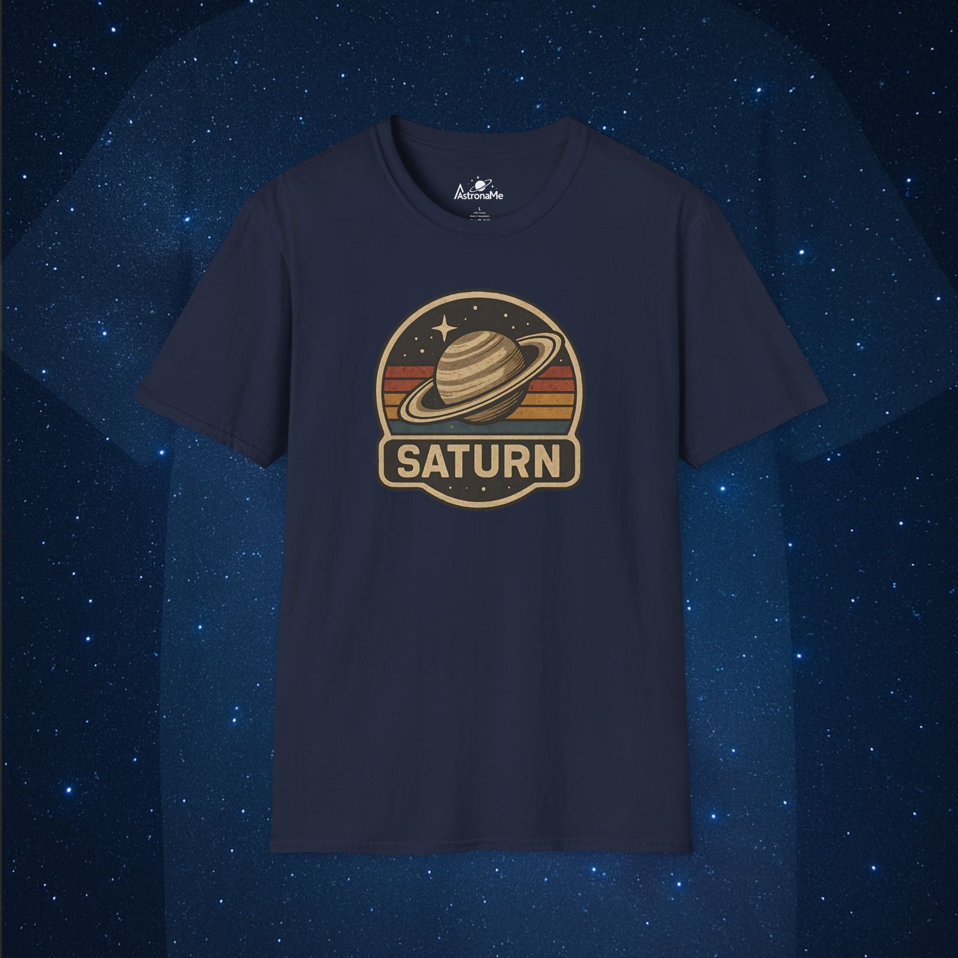 Take your love for the cosmos back in time with this Retro Saturn T-Shirt, featuring the iconic ringed planet set against a backdrop of warm vintage stripes. With a weathered look and classic style, this tee is perfect for space fans who appreciate a bit of nostalgic flair.