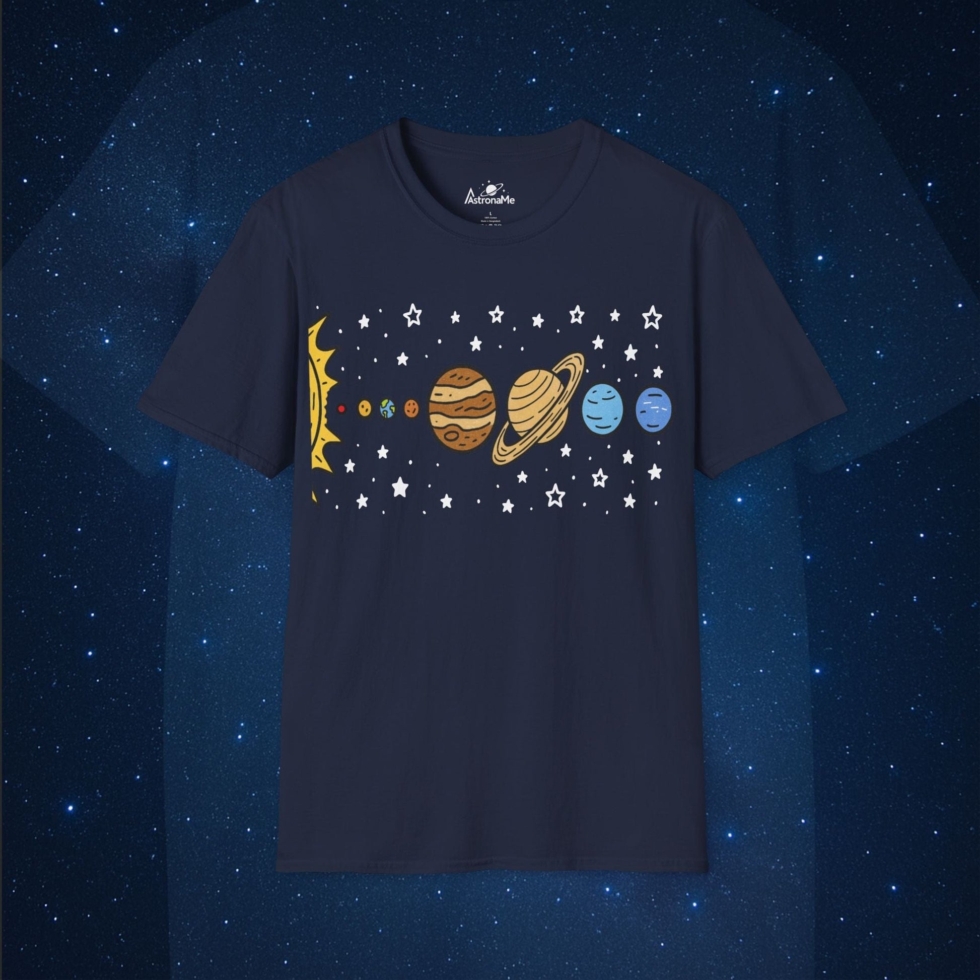 Explore the universe in style with this adorable Solar System Planets T-Shirt! Featuring a lineup of all your favorite planets (yes, even tiny Pluto!), this design is bursting with cosmic cuteness. Surrounded by twinkling stars and bold color, this tee is perfect for astronomy lovers, science teachers, and space-obsessed kids at heart.